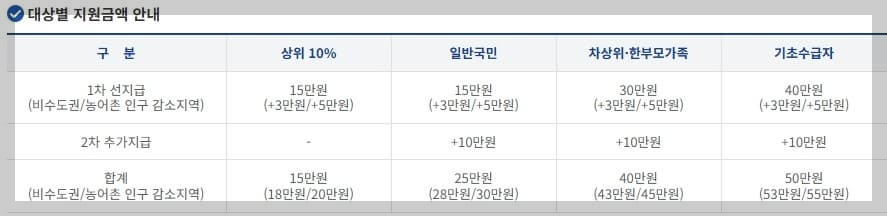 비수도권은 3만 원 / 인구감소지역은 5만 원이 추가 지급됩니다.