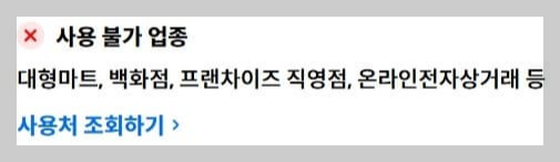 ☞ “ 사용처 조회하기 버튼을 통해 매장 확인 가능
